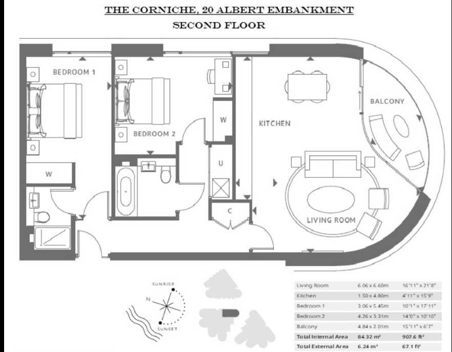 This superb two-bedroom apartment is situated within one of St James’s most prestigious riverside developments on the South Bank, offering luxurious living in an iconic London location.